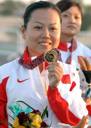 2006年 多哈亚运会女子10米气手枪个人和团体冠军。
