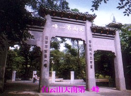 白云山位于广州城北郊,总面积20.98平方公里,是著名的风景区。《广东新语》云此山:“每当秋霁,有白云葱郁而起,半壁皆素。”故名“白云”。白云山最高峰摩星岭,海拔382米,风景优美,号称“天南第一峰”。境内峰峦层叠,溪涧纵横;山上林木秀茂,地下水源充足,形成多处清泉。九龙泉、虎跑泉、日露泉、玉虹泉、玉皇泉、三叠泉和碧乳泉等遍布山间,汩汩不息。