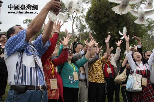 两岸记者放飞和平鸽。