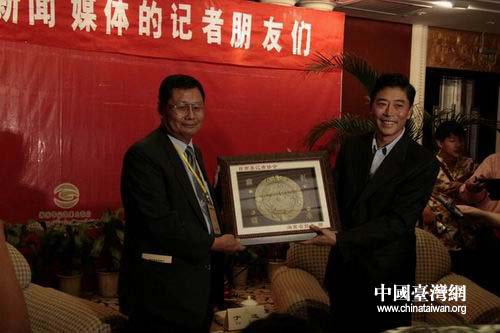 中国台湾网11月29日海口消息 “两岸媒体海南行”采访活动28日在海口正式启动。两岸共有40余名记者参加了此次活动,其中台湾12家媒体的24名记者全部来自台湾南部。图为海南省委副书记于迅(右)与台湾媒体记者团长黄莹辉互赠礼品.(李杰)