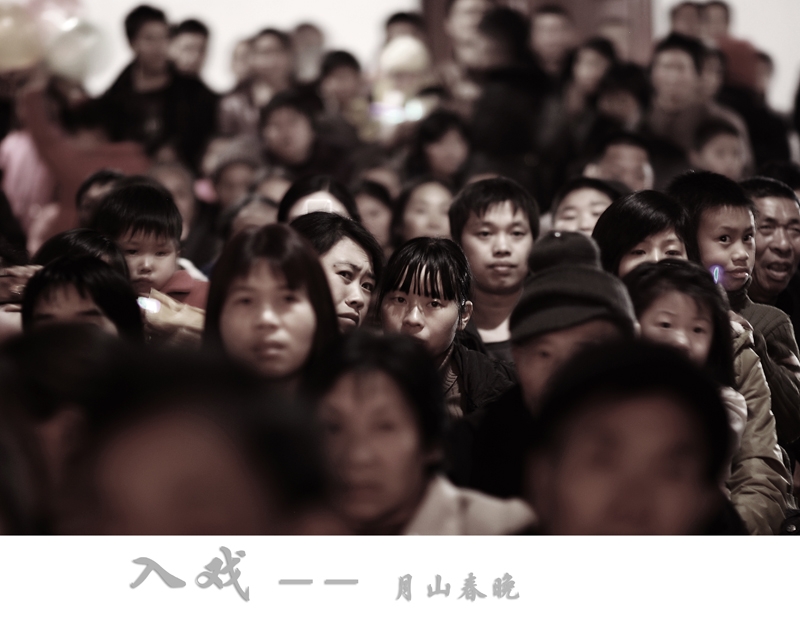 舞台的右前方用一根红绳子拉出的一个空间是演员的后台,上台表演的演员们都尽量找来相似的衣服来统一服装,8个小姑娘表演《竹筒声声》是惟一一个穿着统一表演服的节目,可她们脚上的袜子确是五颜六色的。但不可否认,按照正常的演出质量评价,整个演出确实有着无数的不足。但谁都会说这样的晚会好看,衣服可以不统一,节拍也可以不准,但表演时候的笑脸和认真劲一定不能少。更难得的是,台下仅有的40多张凳子都是让村里的老人坐着,年轻人一律围站着着迷地看着,在这里没有倒彩,只有喝彩,只有笑声。在这个不时地灌进冷风简陋的礼堂中,台上台下合起来拧成了一股非常热腾腾的暖气,他们是冬天里的一把火,烘得人心里暖洋洋。