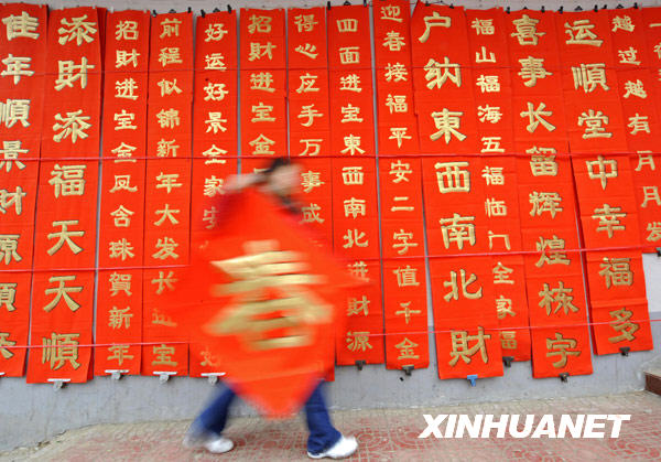 春节临近,红彤彤的灯笼、红灿灿的中国结、红艳艳的对联等节庆饰品为人们营造出浓浓的“年味”。新华社发(杨晓原 摄)