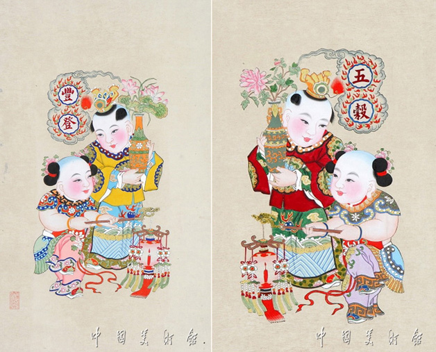 年画是中国传统文化的重要组成部分,它就像一部反映民间生活的百科全书,既内涵丰富又多姿多彩。中国美术馆珍藏有来自全国各著名年画产地的民间年画三千余件,涵天津杨柳青、苏州桃花坞、河南朱仙镇、河北武强、山西临汾、湖南滩头、福建漳州、陕西凤翔、山东潍县、四川绵竹等地。此次展出的200余幅传统木版年画珍品便是从中精选而出,展示了我国传统民间木版年画辉煌的发展历史。