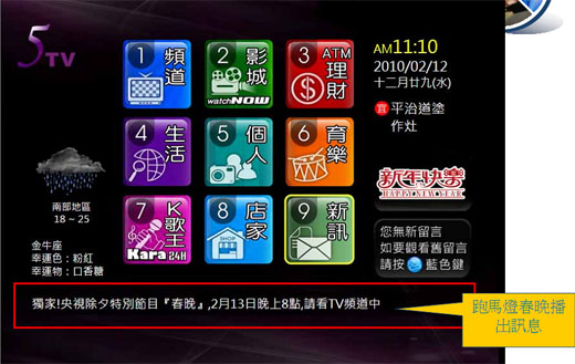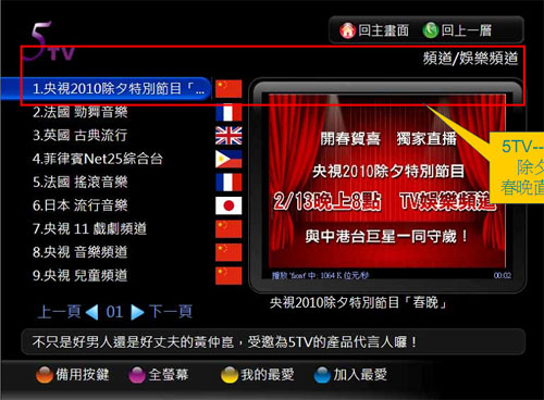 台湾5TV网站设置了直播专区对央视春晚进行全程直播。