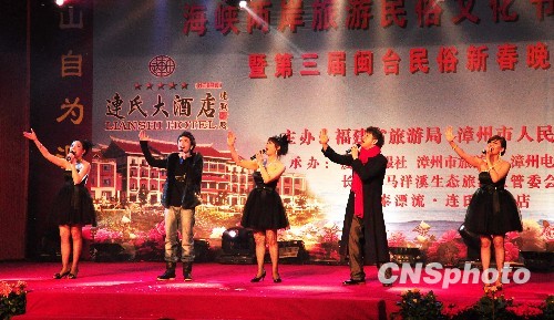2月22日晚,海峡两岸民俗文化节暨第三届闽台民俗新春晚会在福建漳州长泰浓情上演,参演人员超过半数来自台湾,使晚会变得“台味”十足,让现场观众连连拍手叫好。