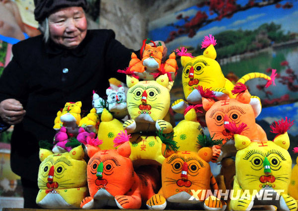 虎年将至,河北省任县南街村老人开始缝制“虎头鞋”和“虎头枕”等虎造型的布艺品,拿到市场销售,受到群众喜爱。新华社记者曲澜娟摄