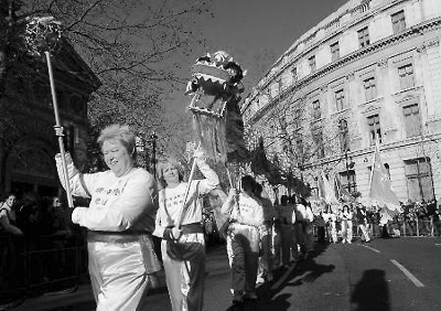 英国舞龙表演队舞起中国龙助兴