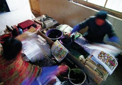 来到朱仙镇,到木版年画社转转自然少不了。进入大院,绿树成荫,雕梁画栋,幽静的环境是制作年画的首要条件。朱仙镇的年画内容多以历史戏剧、演义小说、神话故事、民间传说为主,并点缀雅致的吉庆图案,色彩艳丽浑厚。因为来源于乡土,盛行于民间,与装裱画不同,它更为亲民。广东人认为挡煞辟邪的门神,也可以在这里找到。春节到此,不妨选上两幅,或者有一日不经意地发现,南北门神大有不同。