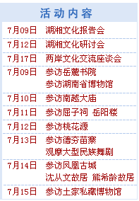中国台湾网7月23日消息 2007年7月8日至7月18日,由中华文化联谊会与湖南省政府联合主办的“情系湖湘――两岸文化联谊行”大型交流活动在湖南省举行。其中来自台湾的文化界精英有89人...
