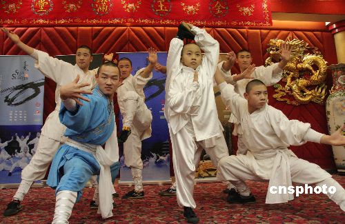 中国内地戏剧作品将首次登陆百老汇舞台。1月13日起,大型中国功夫剧《少林武魂》将在美国纽约百老汇连演二十四场,从而为“中国在百老汇”系列演出拉开序幕。1月11日,《少林功夫》主要演员在纽约举行见面会并集体“亮相”。中新社发 魏晞 摄