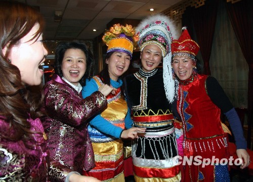 虎年中国春节期间,法国华人社会的活动丰富多采,有彩装游行、各种迎春会、中国“四海同春”艺术团演出等等。图为法国华侨华人妇女联合会的会员们在为大年初一的春节彩装游行排练。 中新社发 吴卫中 摄