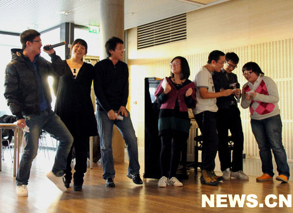 幽默搞笑的小合唱《挪威欢迎你》。 新华网记者李国荣 摄