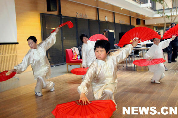 《木兰扇》表演队是学生会专门请来的。新华网记者李国荣 摄