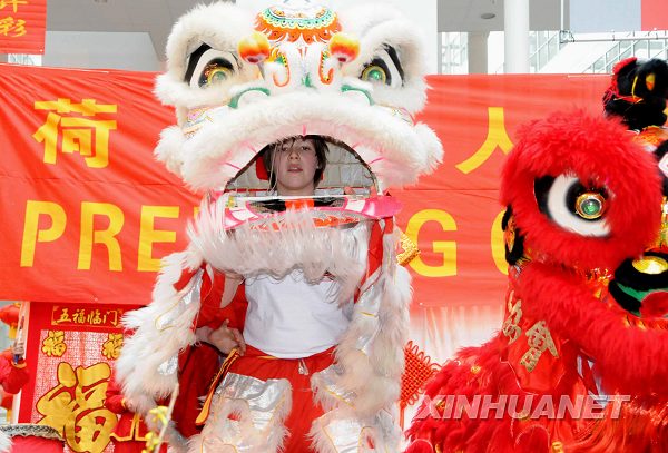 市政厅正对面的唐人街里,由华侨华人子女以及当地荷兰人组成的“功夫”队表演着龙狮舞沿红地毯行至不久前才揭幕的中华牌楼处,举行传统的舞龙采青活动。宽不过15米的街道两侧,上万名荷兰民众摩肩接踵,感受中国佳节的热烈气氛。