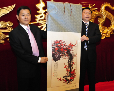 宴会中,国侨办副主任马儒沛向华人协会赠送了字画。