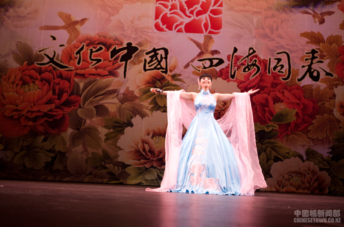 中新网3月2日电 2月28日,中国北京雪花飘飞;新西兰奥克兰,著名女高音歌唱家殷秀梅《我爱你,塞北的雪》的歌声伴着掌声回荡在ASB剧场。“正月十五雪打灯”,这一天是中国农历元宵节,中国国务院侨务办公室和中国海外交流协会组派的“文化中国·四海同春”大洋洲艺术团在新西兰最大城市奥克兰举行首场新春慰侨文艺演出,与2500名观众共庆佳节。