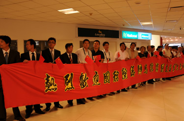 旅阿侨胞在布市国际机场热烈欢迎“文化中国 四海同春”南美艺术团。