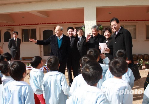 3月3日上午,带队国务院侨办“四海同春”亚洲艺术团在日本访演的国务院侨办党组成员、秘书行政司司长熊昌良(右三)一行来到神户中华同文学校及华侨幼儿园参观。 中新社发 关妍 摄