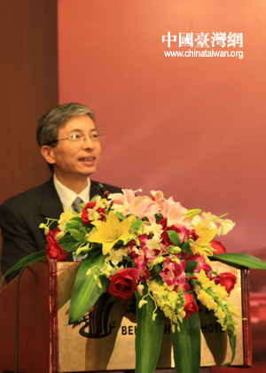 北京市政协副主席、台盟北京市委主委蔡国雄代表主办方致欢迎辞。(中国台湾网 赵静 摄)