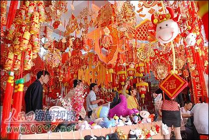 1月16日,海南三亚的街头年味渐浓。农历牛年将至,三亚市民纷纷来到街上,选购大红灯笼、中国结、春联等,迎接新春佳节的到来。