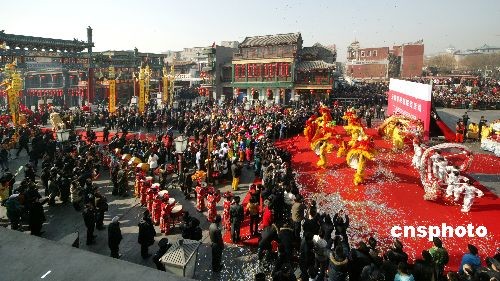 2009年2月9日,“传统民间花会踩街活动”在北京前门大街举行,此次前门大街踩街会,更加侧重技艺展示,而淡化了传统的会规会礼。 中新社发 马毅行 摄