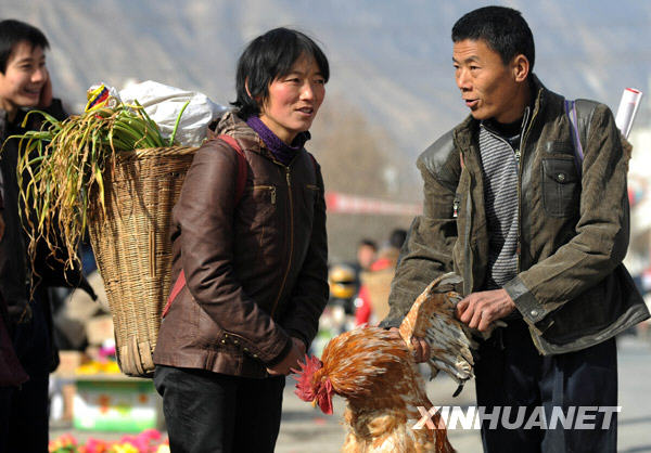 当日是甘肃省陇南市武都区两水镇春节前的最后一个集市,附近灾区群众纷纷前来逛大集、购年货,准备红红火火过大年。新华社记者金良快摄