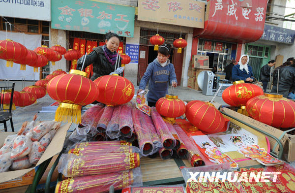 1月23日,两水镇群众在“年集”上挑选红灯笼。新华社记者韩传号摄