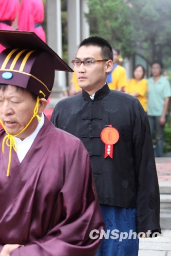 9月28日清晨,台北孔庙隆重举行孔子诞辰2559周年释奠典礼。35岁的孔子第79代裔孙孔垂长,首度以大成至圣先师奉祀官身分亲行上香。孔子第77代裔孔德成于去年辞世。