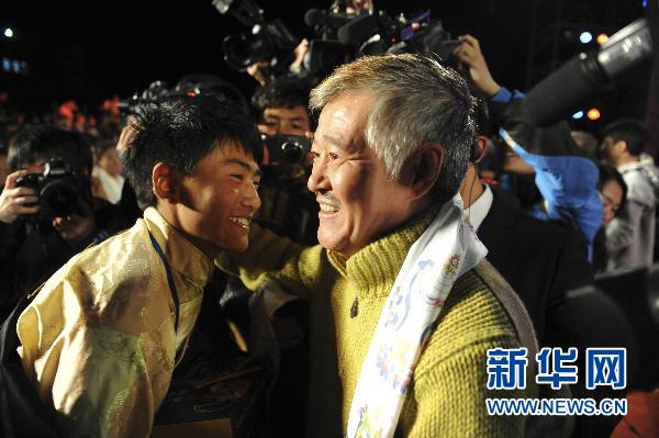 9月22日,著名笑星赵本山率众弟子来到辽宁本溪市实验中学表演,与在这里就读的600余名青海玉树地震灾区中学生共度中秋佳节。 新华社发(潘恩战摄)