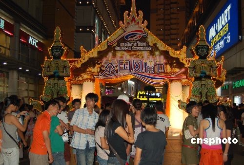 9月13日晚,广西南宁市中心正在举行的“泰国风情节”吸引了众多市民和游客。由泰国驻南宁总领事馆主办的该项活动从9月12日开始,持续到9月14日,适逢中国传统节日中秋节,为当地增添了欢乐气氛。 中新社发 刘万强 摄