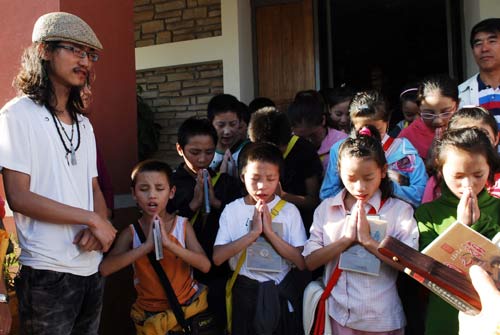 田七先生与玉树地震孤儿共度中秋祈祷祝福