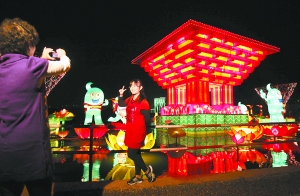昨晚7时,整个龙潭公园沿湖岸一周水面、陆地照如白昼,各色灯组大放异彩。一直持续到10月7日,每天从下午4时至晚上10时,第五届“龙潭灯会”都将在位于新东城区的龙潭公园内如期迎接游客的到来。