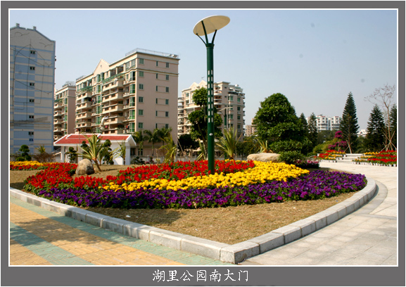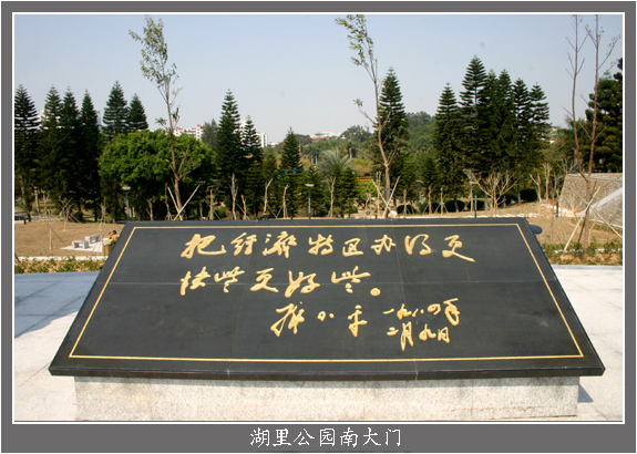 湖里,白鹭岛西北偶,昔积水成湖,沿岸生竹,古名竹坑湖,相传凤凰翔舞其间,故别称凤湖,凤凰成为湖里之象征。1981年改革开放,划湖里2.5平方建厦门经济特区,1984年2月9日,邓小平视察湖里,挥毫题词。海内外企业竞相落户,宛如凤凰来临,湖里发祥。1987年成立湖里区,渔村崛起而成现代化都市,企业似羽丰,字若翅张,云蒸霞微,凤凰振翅,跨入21世纪,腾巢换凤,优化产业,全区经济逐年跃增,百姓安居乐业,双翼并展,凤凰冲天,瞻环球之风云,绘宏伟之蓝图,落实科学发展观,构建和谐社会,冀辉煌于再铸,当追日以远飞,美哉!湖里如凤之舞。(感谢湖里公园管理处提供文字稿)
