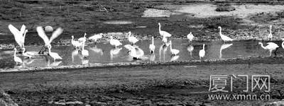 昨天傍晚,记者和厦门观鸟会的资深“鸟人““野鸟”,赶到湖边水库,果然见到白鹭翔集的壮观场面。“野鸟”对这里进行过长期跟踪观测,他说,湖边水库以前偶尔有白鹭出现,但从来没见过这么大的规模。