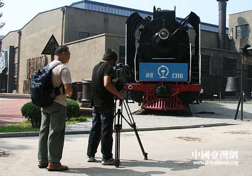 台湾旺旺中时沈阳采访团在沈阳铸造博物馆拍摄蒸汽火车 图片来源:沈阳市台办