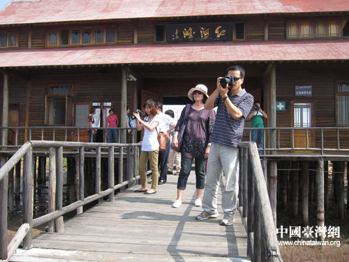 中国台湾网9月13日盘锦消息 13日上午,参加两岸媒体辽宁行的24名记者走进辽宁盘锦市,欣赏世界奇观“红海滩”景色。