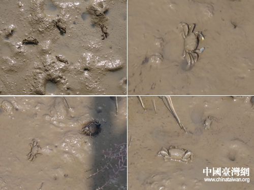 湿地上随处可见的河蟹,数数有多少?(中国台湾网 李典典摄)