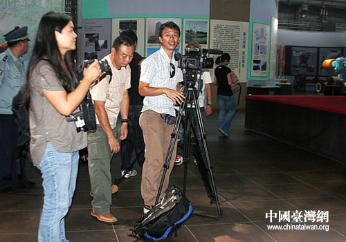 台湾旺旺中时沈阳采访团在沈阳铸造博物馆内做节目 图片来源:沈阳市台办