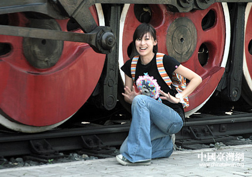 台湾中视主持人张棋惠小姐与车轮比高 图片来源:沈阳市台办