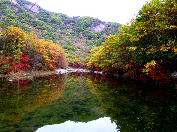 关门山位于本溪满族自治县境内,本溪水洞南十三公里,由红叶湖(关门山水库)和关门山森林公园构成。距市区48公里。它有三道门:北门,在小市方向,双峰对峙,中间拱桥相连;南门,在去汤沟的岭顶,双峰对峙,一阔一窄,一大一小,公路从中穿过,十分险要,故称关门山;中门,在深谷河道中,“双扉”夹水,宽只二十余米,为兴修水库的天然门柱。