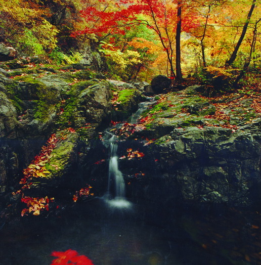 关门山一年四季五彩缤纷,景色各异。春天,满山满岭野杜鹃、映山红、天女木兰花,还有不知名的各种山花,彼谢此开,烂熳不辍。夏天,云起云落,云雾变幻奇妙。秋天,“晓来谁染霜林醉”,这里漫山枫叶,层林丹染,“霜叶红于二月花”。冬天,这里虽一如北国冰封雪飘,却突然奇崛,胸藏沟壑。