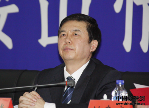 鞍山市委副书记李宇光向媒体介绍当地发展状况 (中国台湾网 孙金诚 摄)