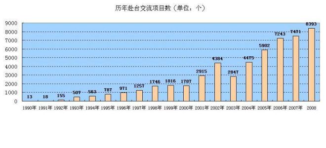 台湾自一九八七年开放大陆探亲后,即颁发两岸地区教育交流的若干规定,而大陆教育部“教育委员会”也有相关规定负责管理大陆人士来台教育参访,并协助台湾人士赴大陆的学校、教育机构学习、进修、讲学、研究,及与大陆进行教育交流、合作等相关事宜。近年来,两岸文教活动交流活动频繁,人数屡创新高。依据统计数据显示,大陆地区人士来台从事文教活动由2005年的12,315人、2006年14,775、2007年16,226到2008年的20,546(大陆工作委员会,2009)。依照此一趋势看来,两岸交流活动日益趋多,有增无减。