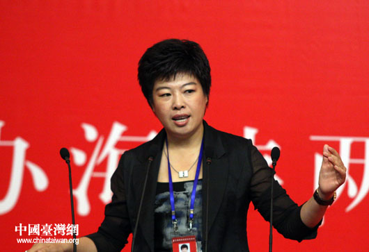 在11日举行的第五届两岸经贸文化论坛专题报告上,北京师范大学艺术与传媒学院副院长、教授于丹做了题为《感悟中国智慧》的报告。(中国台湾网 钟宝华 摄)