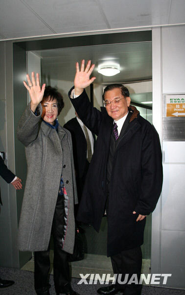 当日13时10分,中国国民党荣誉主席连战乘台湾长荣航空航班离沪返台。中共中央台湾工作办公室主任王毅等前往机场送行。新华社记者 任沁沁 摄