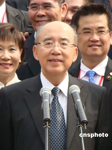 6月1日上午8时30分许,吴伯雄率领中国国民党大陆访问团晋谒南京中山陵。图为谒陵仪式后,吴伯雄在博爱广场向媒体发表了演讲。 中新社发 丁梅 摄