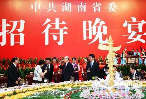 第五届两岸经贸文化论坛7月11日在长沙开幕,当晚,东道主湖南省委举行晚宴招待出席论坛的嘉宾。 中新社发 宋吉河 摄