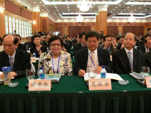 民进党人士许荣淑(左)、范振宗(右)备受礼遇,被安排在第一排参加两岸论坛。图片来源:大公报