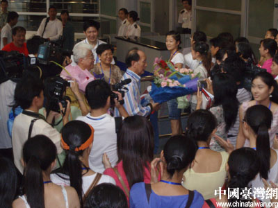 | 中国台湾网8月6日长沙消息 昨天下午4点45分,参加“湖湘文化之旅”的140多名台湾代表抵达湖南长沙黄花机场。这140多名代表主要是来自台北艺术大学、东吴大学、辅仁大学、实践大学、台南科技大学等10多所台湾院校的院长、教授、教师、研究生、大学生。他们将与60多名来自湖南大学、湖南师范大学、湖南理工学院的湖南学子一起牵手“湖湘文化之旅” 交流活动,为期10天。