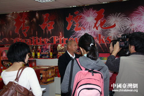 东信烟花集团为两岸记者展示自己的产品。(摄影:钟宝华)